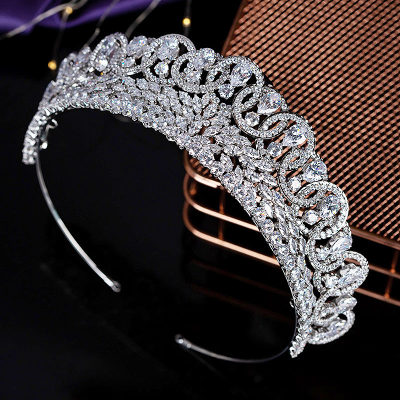 Hadi6003 — couronne et diadème en cuivre Zircon cubique, accessoires pour cheveux, cadeau d'anniversaire de mariage, spectacle, en Stock, BC6003