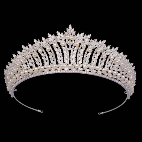 Bijoux de cheveux haut de gamme complet Zircon cubique diadème mariage perle de mariée conception à la mode couronne pour les femmes Corona Princesa BC7216